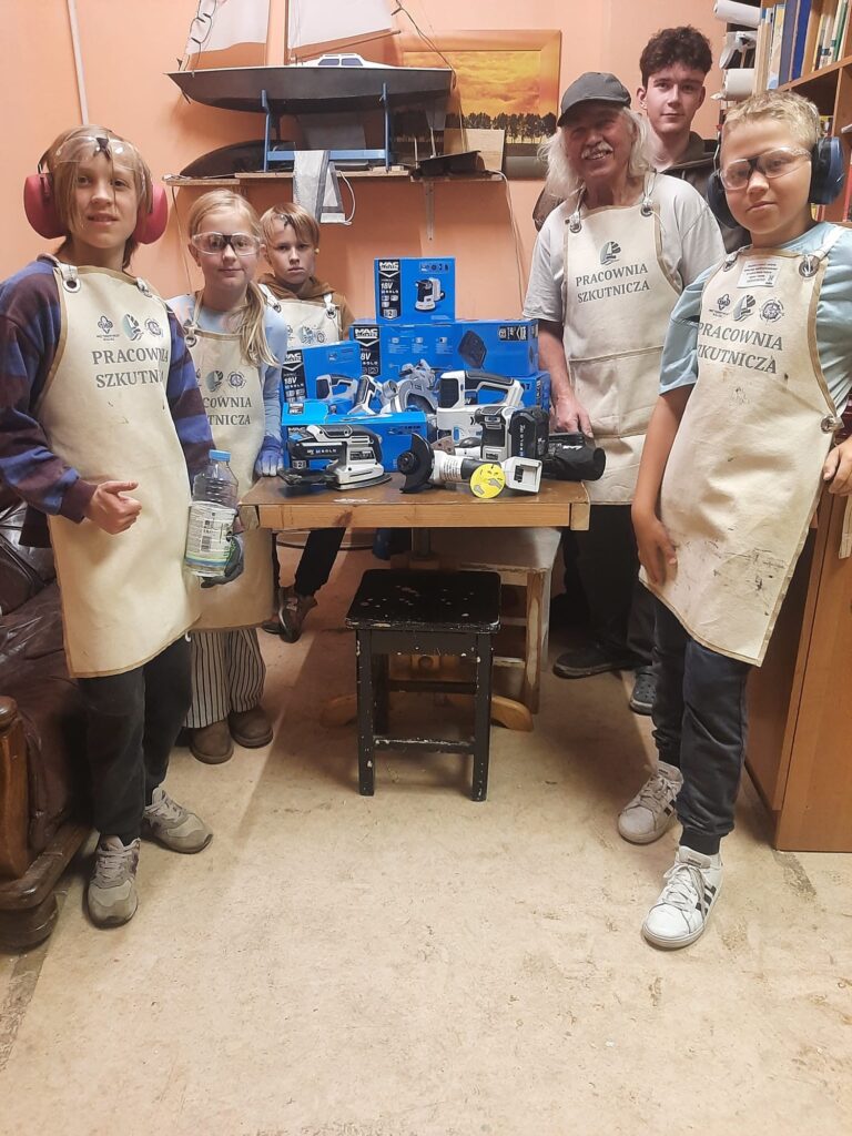 Młodzi żeglarze mieli okazję poznać tajniki pracy przy łodziach, zdobyć nowe umiejętności i przekonać się, że pasja do żeglarstwa zaczyna się często od… zapachu drewna i żywicy ????????